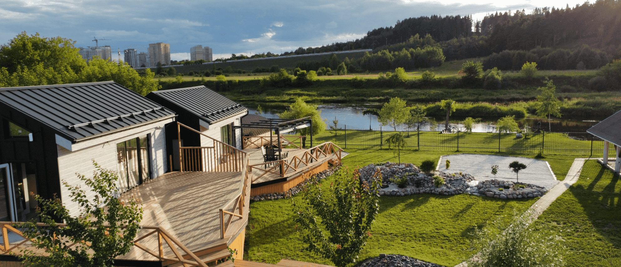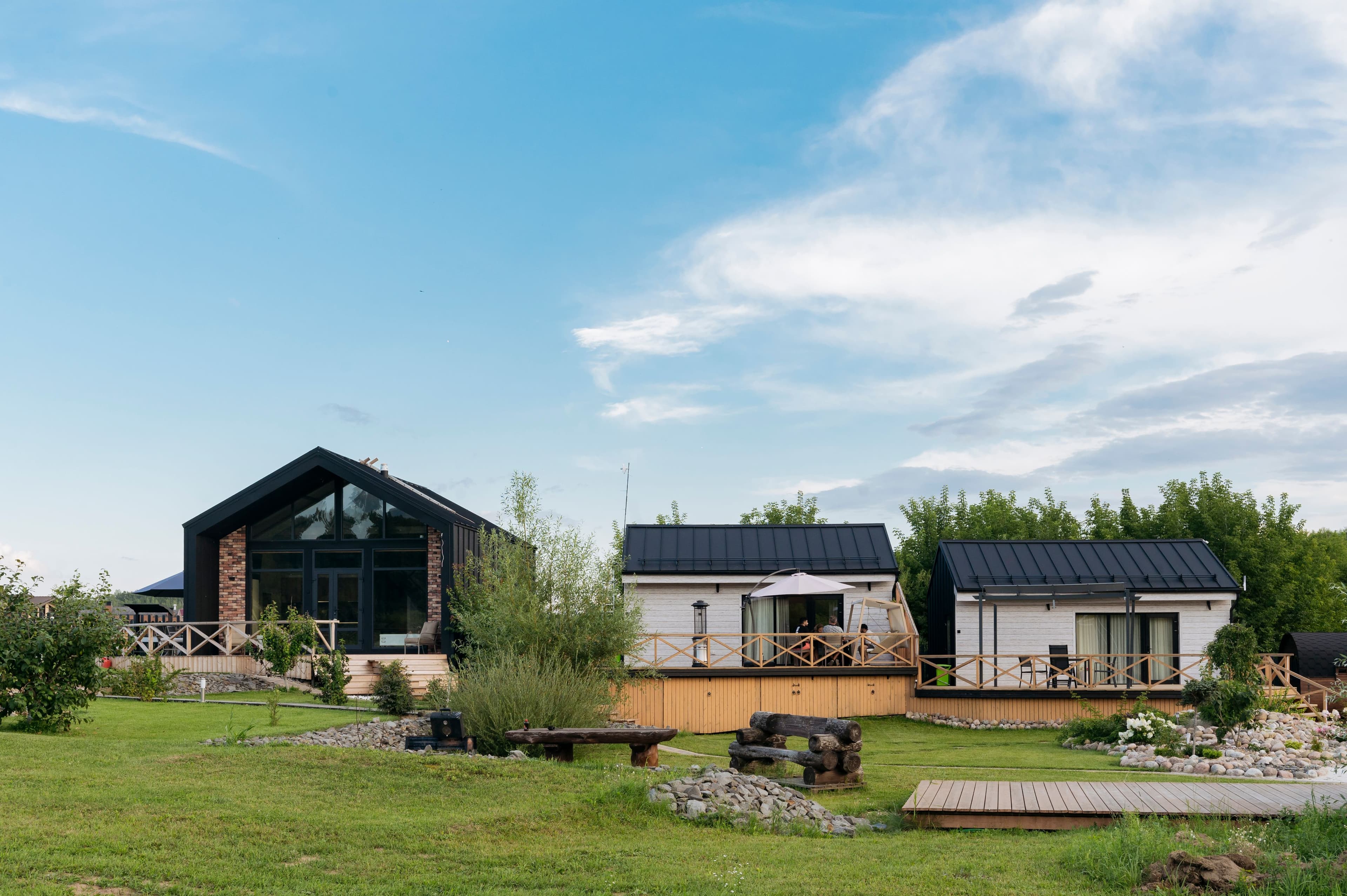 Нашими вдохновителями стали трое активных внуков, которым всегда нужно быть в движении и изучении окружающего мира. При этом хотелось найти баланс между семейными активностями и тишиной, спокойствием. Так родилась идея создания отеля на берегу реки, которая олицетворяет постоянное движение и в то же время покой, гладь воды.