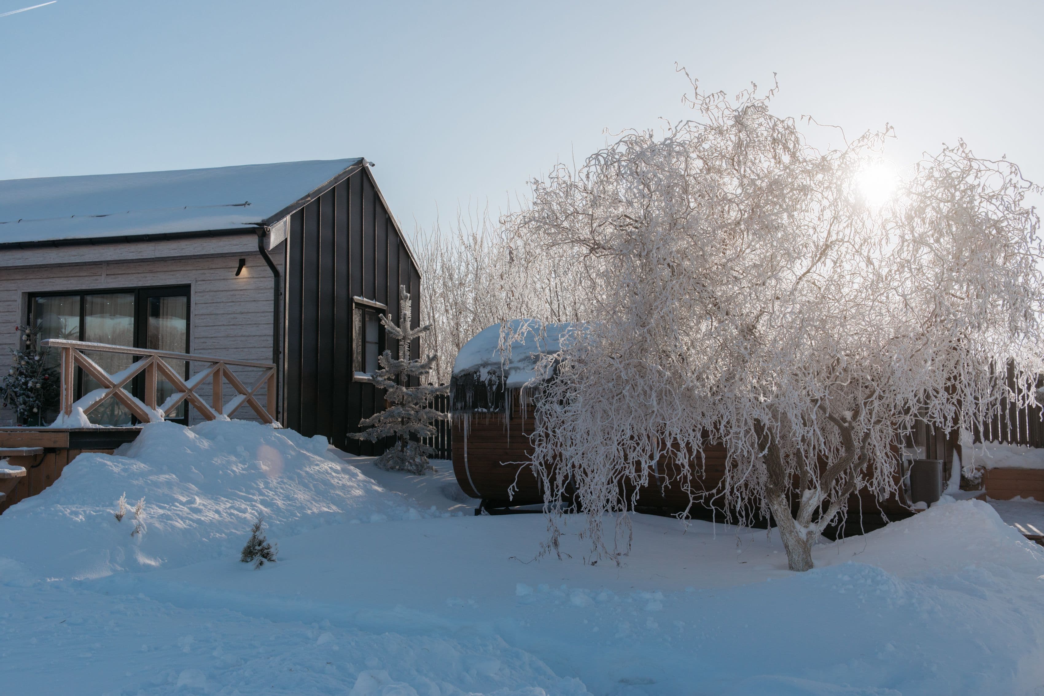 Помимо бани можно арендовать чан на берегу реки ароматным хвойно-цитрусовым декором.