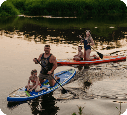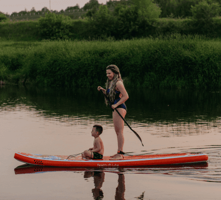 Если Вы хотите начать сплав от нашего отеля, возможно взять САП-борд с почасовой оплатой (1000 ₽/час) и вернуться против течения обратно к отелю (не пугайтесь, течение вполне позволяет это сделать без специальной подготовки).